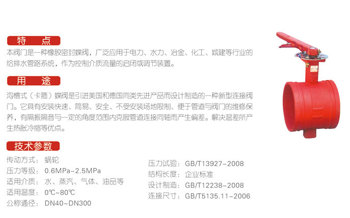 WGLX-16軟密封溝槽式手柄蝶閥 - 消防閥門系列 - 河北昆明本裕金属制造有限公司